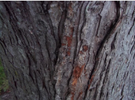 Bark: Young bark is smooth and gray and eventually develops long, wide strips that turn upward at the ends as the tree ages.