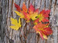 Leaves: Simple, opposite leaves are medium green, about 3 to 6 inches long, five-lobed, with silvery underside. Leaves are green in summer, turning yellow-green in fall.